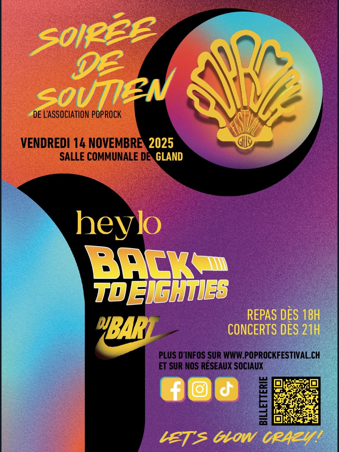 dès 21h00 : concerts (heylo - Swiss Alt-Pop, suivi du groupe Back to 80's - The Ultimate 80's Swiss Tribute Band !)